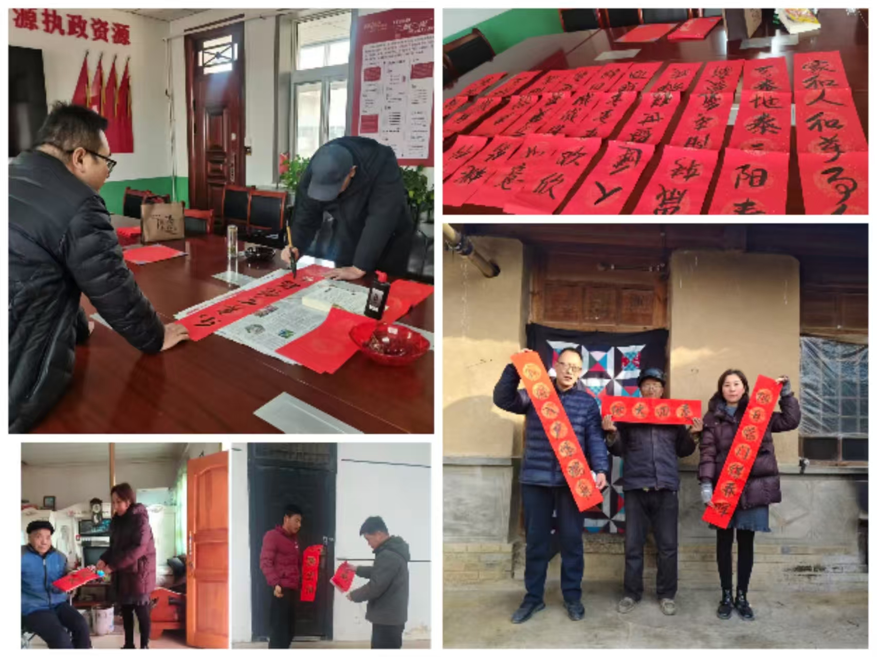 一是文化惠民润人心,春联传递新希望。班子成员、干部现场创作,围绕“乡村振兴”“健康长寿”“吉祥如意”等主题,书写春联100余副、福字20余张。这些带着墨香的“文化年货”,由结对干部逐一送到孤儿、困难残疾人、特困家庭手中,鲜红的春联不仅装点了庭院,更点亮了群众对新年的憧憬。帮扶队员们在帮助独居老人送春联的同时,还细心帮忙清扫院落、擦拭门窗,让老人的居所焕然一新,切实感受到“大家庭”的温暖。